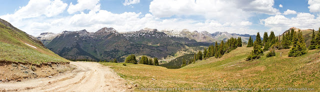 | This panorama shows the road and view to the west from the POV of the photo above. Click here for larger version. |