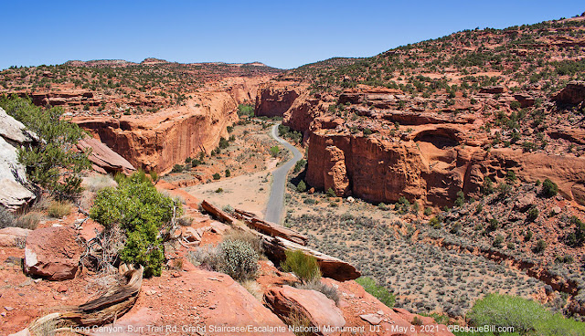 I was headed south toward Big Water. That was a given. Did I want to side track along Lake Powell to Alstrom Point - that looked interesting in the travel video I'd watched. But it was shaping up to be another hot day for early May. Driving with the A/C on in the truck was OK, but the camper is not comfortable in the heat. So I quickly decided to instead head back to the main highway then drive through Page and cut across to Kayenta, north through Mexican Hat, up Moki Dugway to cross Cedar Mesa and climb up between the Bears Ears to find cooler temperatures at altitude. Maybe I'd even see if the dispersed campsite I'd found on my previous trip (but not stayed at) was available.